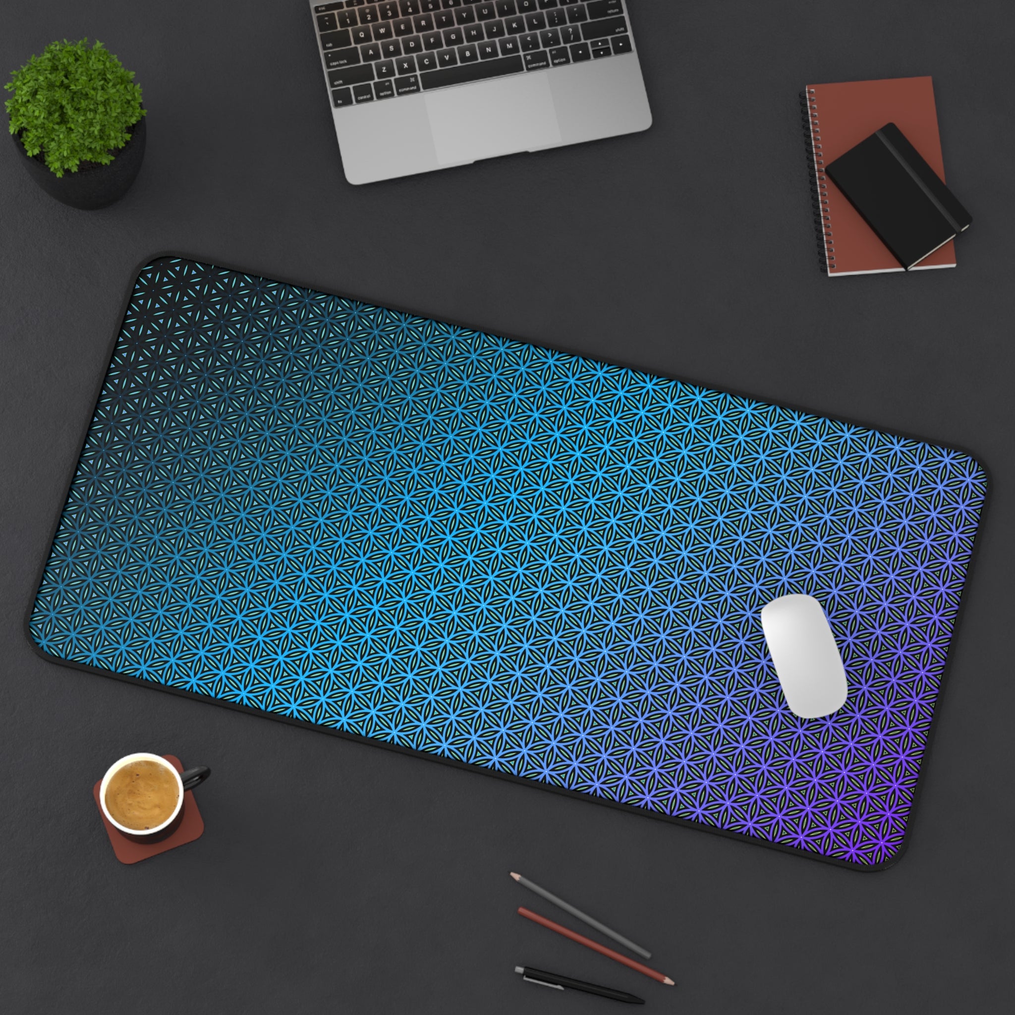 "Blue Flower of Life Pattern" DESK MAT (12x18)(12x22)(15.5x31)