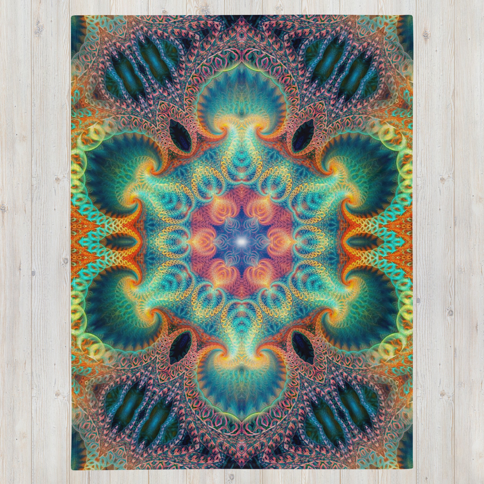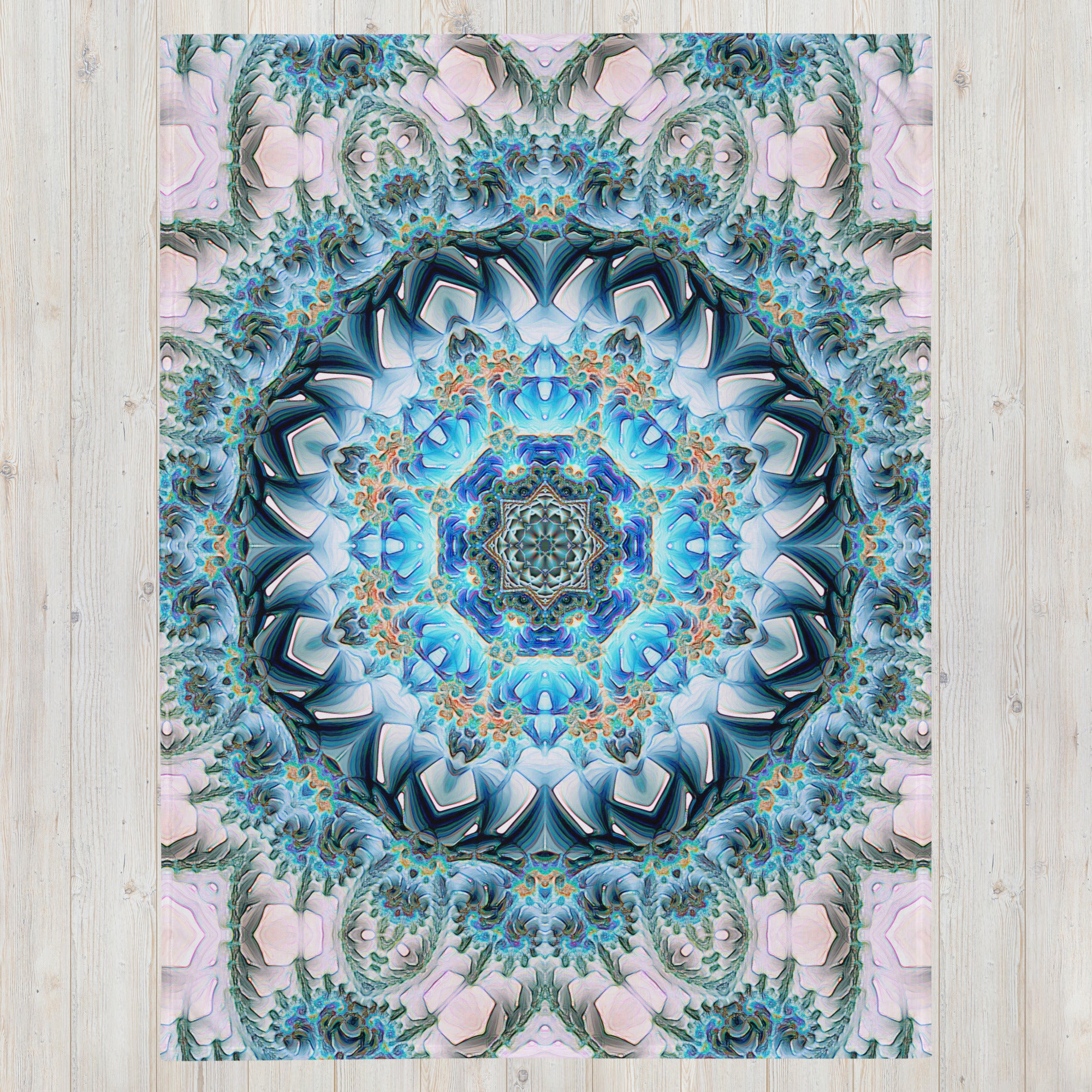 "Aquatic Rays" - Fractal Mandala THROW BLANKET
