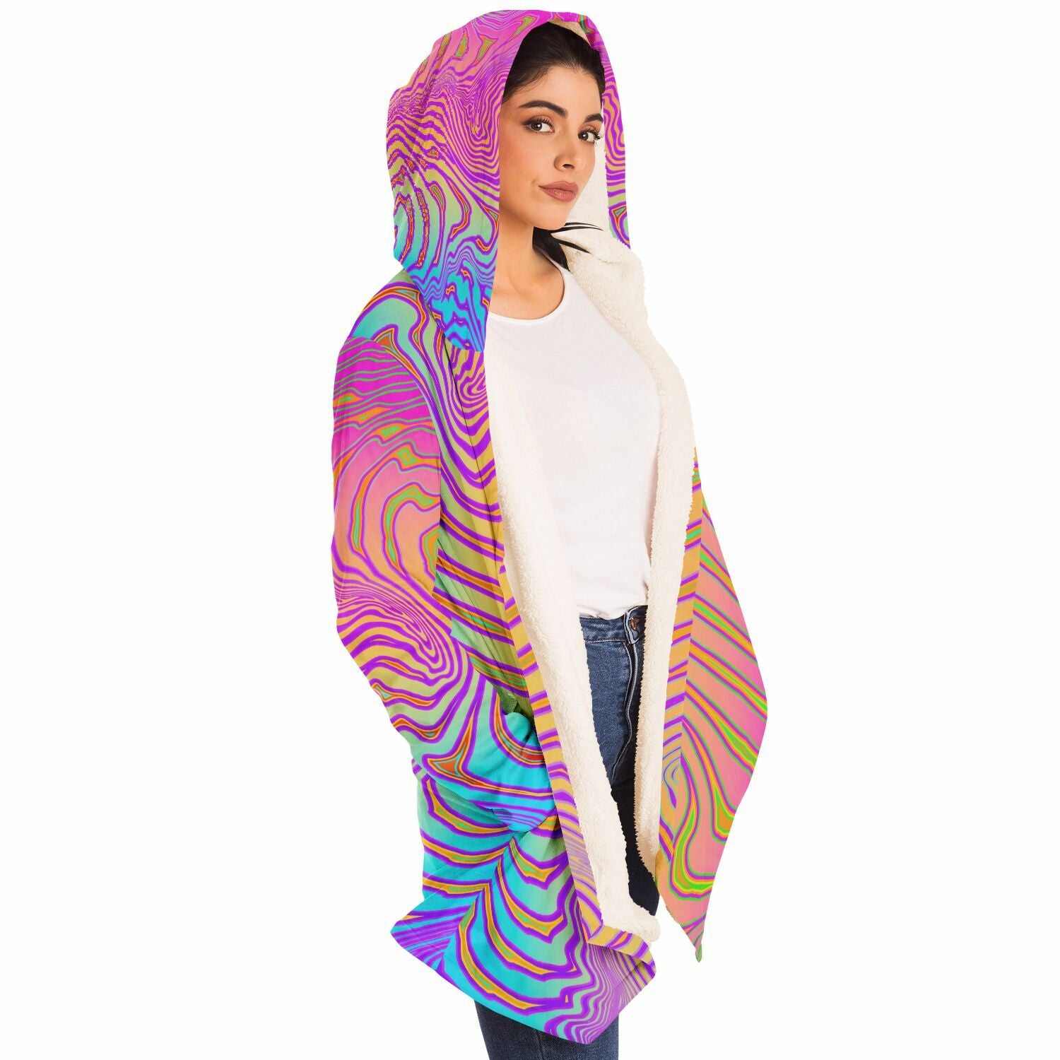 Wrap yourself in this luxurious cloak that's as eye-catching as it is comfortable. Its microfiber fleece lining ensures a snug feel while the micro-mink polyester exterior really stands out with vibrant, high-definition art that'll make a statement. And with two spacious side pockets, you'll stay stylish and practical wherever you go.